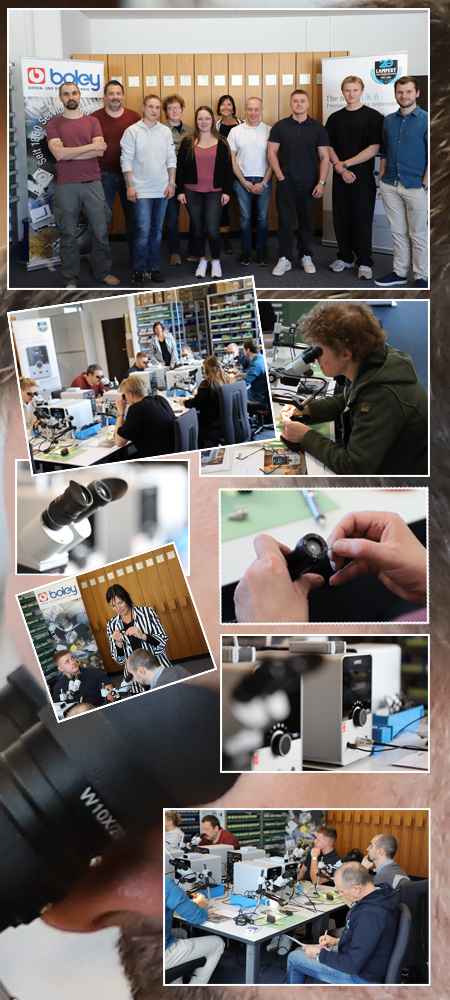 Die Teilnehmer hatten hierzu Ihre eigenen Schmuck- und Uhrengegenstände mitgebracht. Frau Englert konnte daran exemplarisch für alle Teilnehmer Problemlösungen erarbeiten und somit wichtige Tipps für die alltägliche Praxis von Werkstattarbeiten darstellen. Im Vordergrund stand dabei auch der Erfahrungsaustausch der Teilnehmer untereinander.