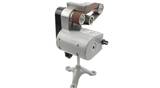 Ideal zum Vor- und Feinschleifen der Werkstücke direkt an der Werkbank. Der Bandschleifer ist dank seiner Kugelaufhängung frei kipp- und neigbar.