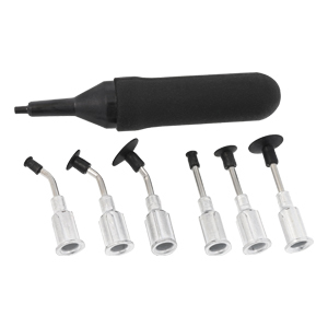 The set includes 6 interchangeable nozzles (suction tips) – three straight and three angled versions. The suction nozzles are available in three different sizes: 3 mm, 6.5 mm and 9.5 mm. This means that the right tip is available for every application, regardless of whether particularly small, medium-sized or larger components need to be picked up safely.
