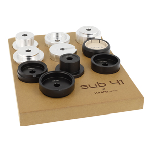 Set of 10 high-quality pressure pieces on a wooden base. This set allows you to remove and replace RX SUB 41 glasses easily, precisely and quickly.
