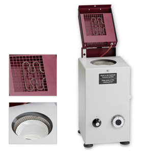 The HT II warm air drying centrifuge permits quick drying after jewellery is cleaned. Even complicated shapes are dried without marks in the shortest possible time thanks to lid heating which is very quickly effective. The heating is steplessly controlled by a thermostat from 0 – 110°C. Time of centrifuging can be set at up to 5 minutes. When the lid is opened, the centrifuge stops immediately.