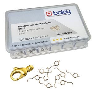 Die Federn sind passgenau, zuverlässig und ermöglichen eine schnelle Instandsetzung defekter Verschlüsse – ideal für Goldschmiede, Werkstätten und Servicebereiche.