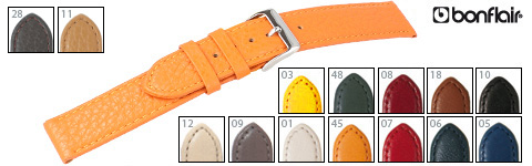 Kalbsleder genarbt seidenmatt, flache Ausführung mit Naht. In kräftigen Farben.