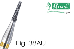 The tapered Busch carbide bur Fig. 38AU is made from ultra-fine grain tungsten carbide, densified through hot isostatic pressing at elevated temperatures. This manufacturing process gives the bur exceptional hardness, long service life, and outstanding cutting performance.