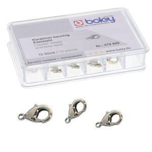 This assortment includes the most popular cast lobster clasps with a strongly curved, bulbous shape. They impress with their first-class, heavy quality and outstanding workmanship.