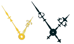 Precisely manufactured hands for quartz and kitchen clock movements with standardized Euro fit. The hands are available in various shapes, colors, and lengths and are suitable for replacement, repair, or customization of modern wall and kitchen clocks.