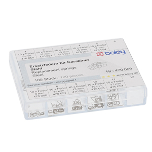 High-quality replacement springs for lobster clasps. Made from durable spring steel for optimum tension and lasting resilience. The robust springs ensure that the snap hook closes cleanly again and the carabiner regains its full functionality.