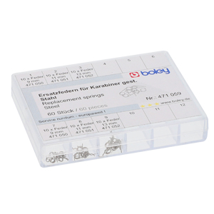 High-quality replacement springs for lobster clasps. Made from durable spring steel for optimum tension and lasting resilience. The robust springs ensure that the snap hook closes cleanly again and the carabiner regains its full functionality.